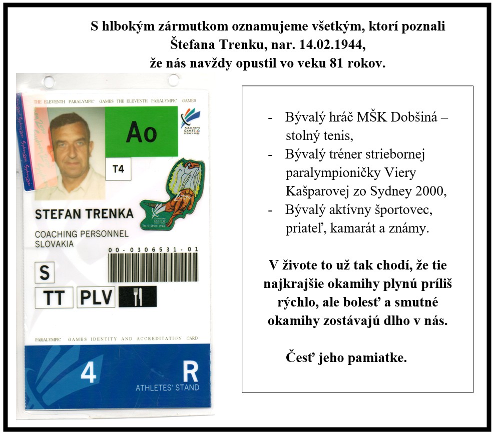 S hlbokým zármutkom oznamujeme, že nás opustil náš kamarát a spoluhráč František Koutek, dlhoročný hráč Baníka Mlynky a STK Gemerská Poloma. Navždy ostaneš v našich srdciach.